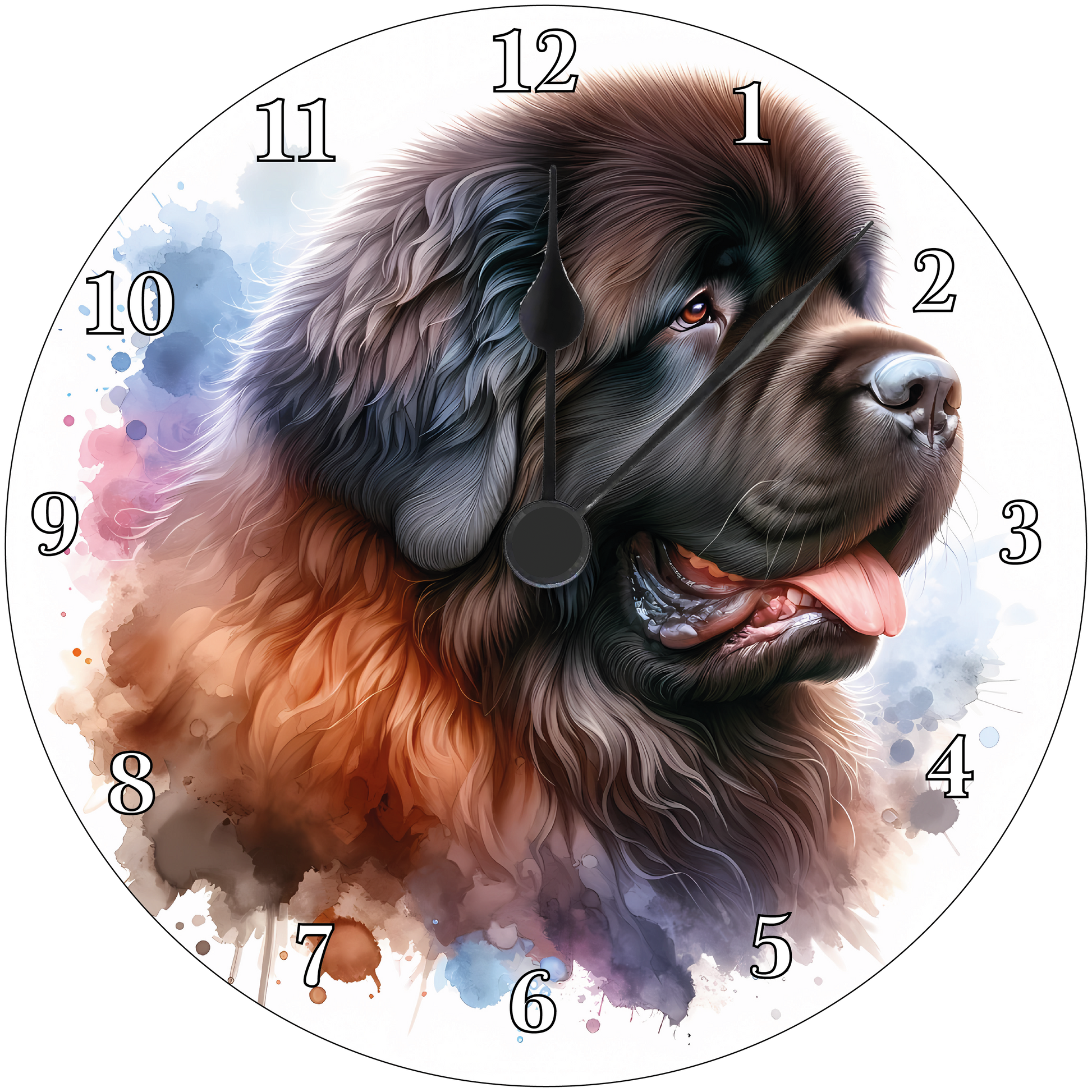 Keep track of time in style with the 300mm Wall clock. This wall clock not only adds a touch of elegance to any room, but its accurate timekeeping will help you stay on schedule. The perfect addition to your home or office decor. They are produced from the images of our own dogs, along with artistic images of Newfoundland dogs.